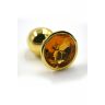 Втулка анальная Kanikule металлическая малая золотая с оранжевым стразом