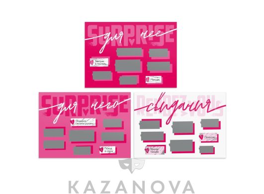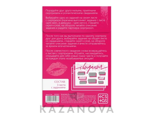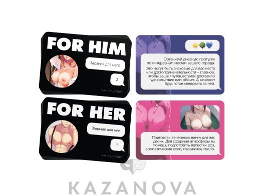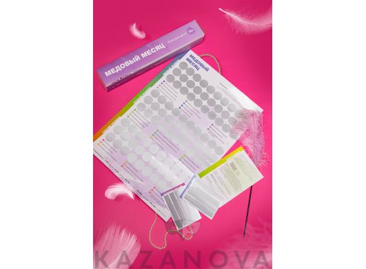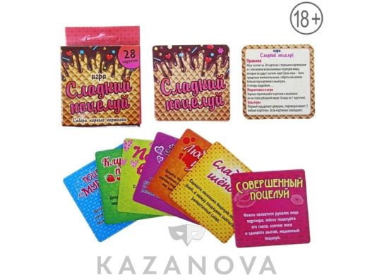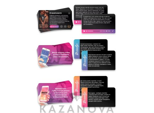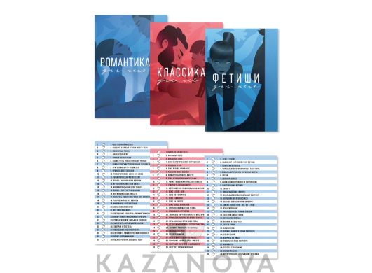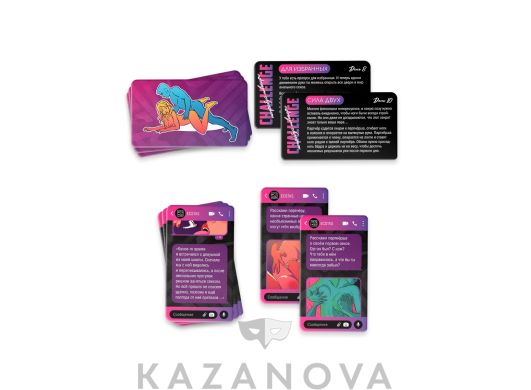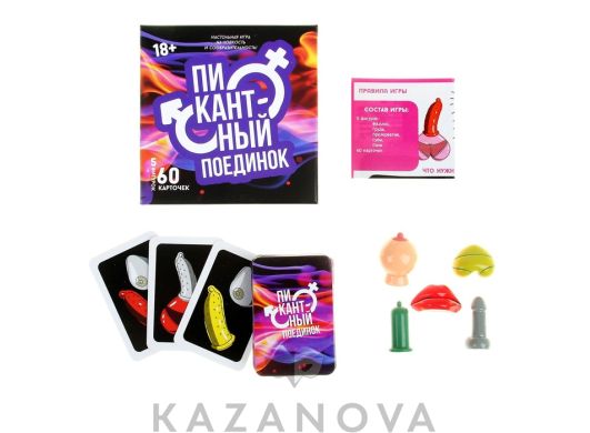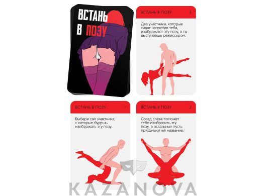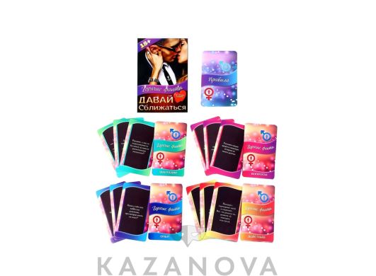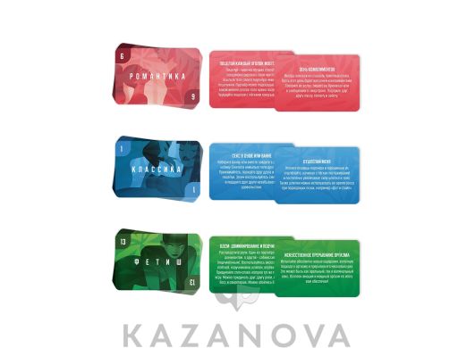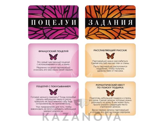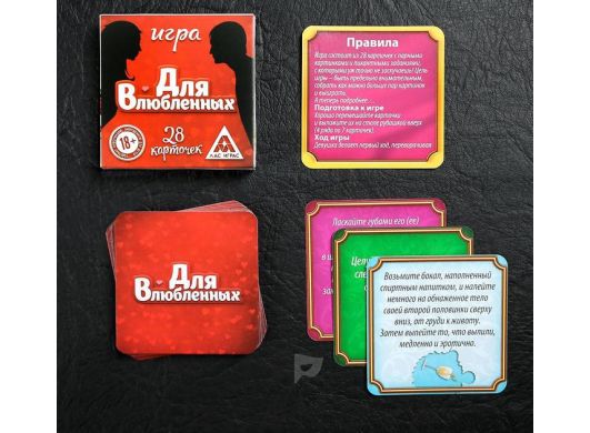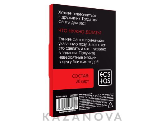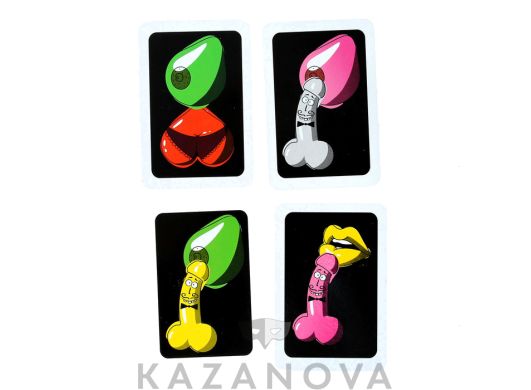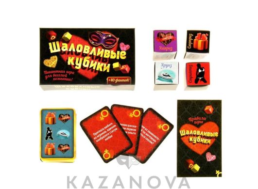 53 карточки-фанты разных цветов. Кубики "действие + место на теле".