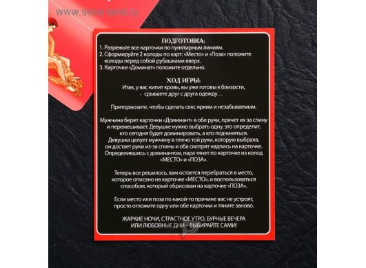 Для двух игроков. От 20 минут. Пикантные аксессуары для ласк в наборе.