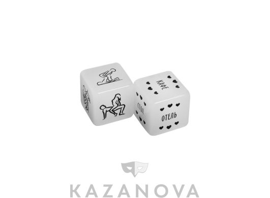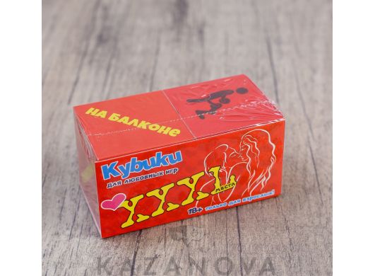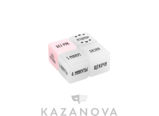 53 карточки-фанты разных цветов. Кубики "действие + место на теле".