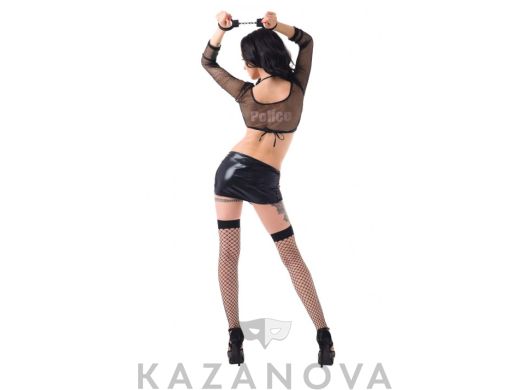 В комплекте: платье, перчатки, пояс, наручники, чулки, пистолет.