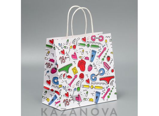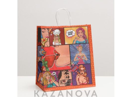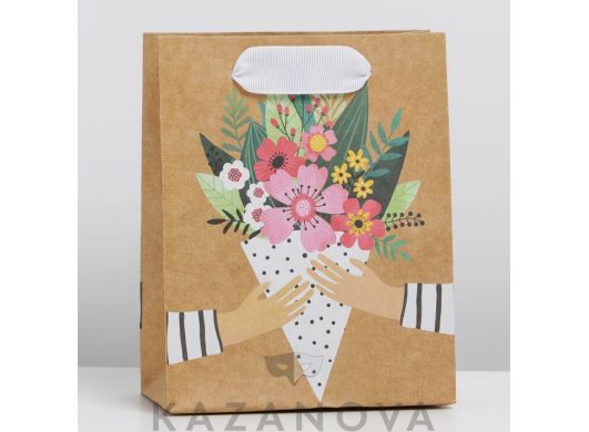 С ручками. Прочный&Nbsp;. Стильный дизайн. Из крафтовой бумаги.