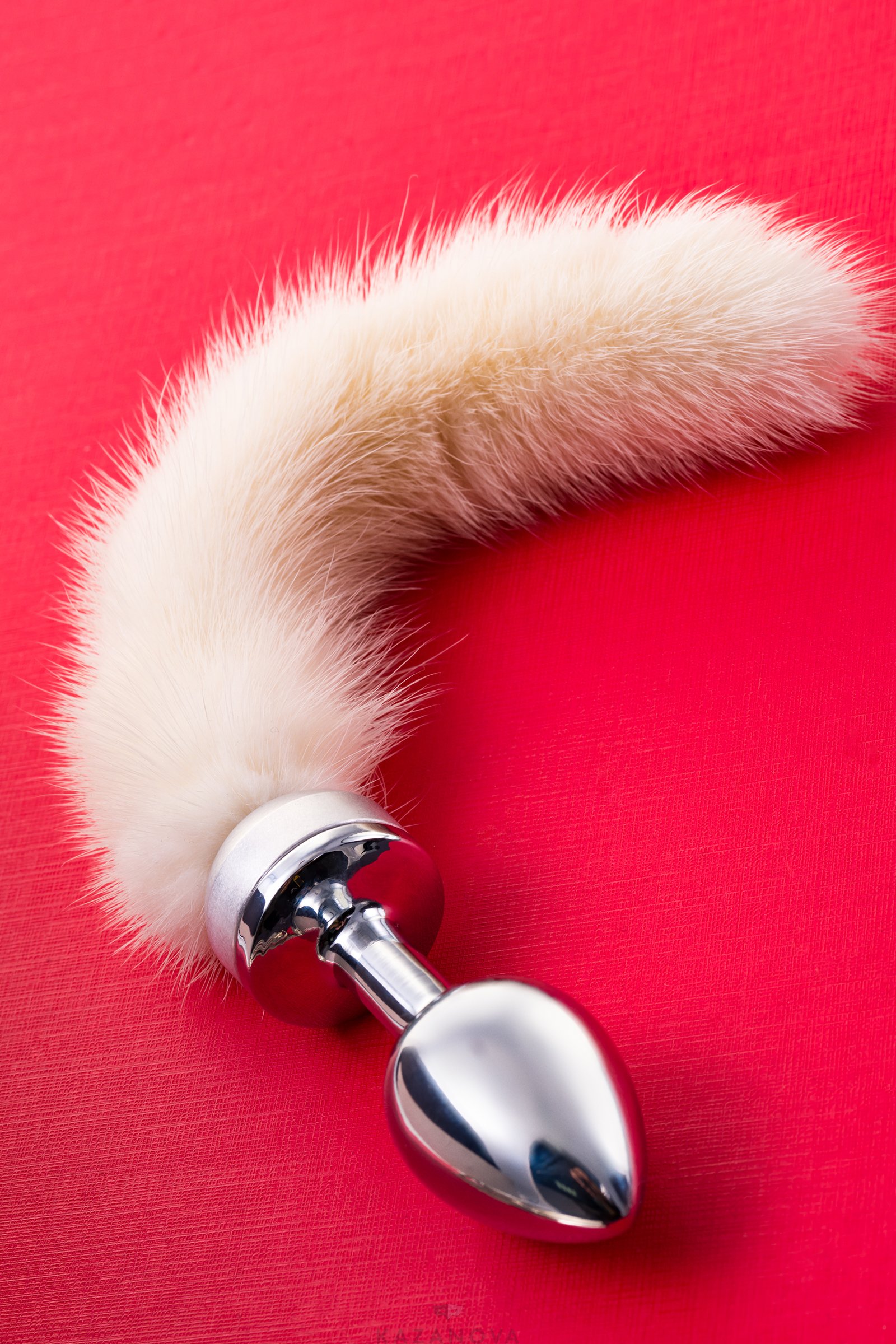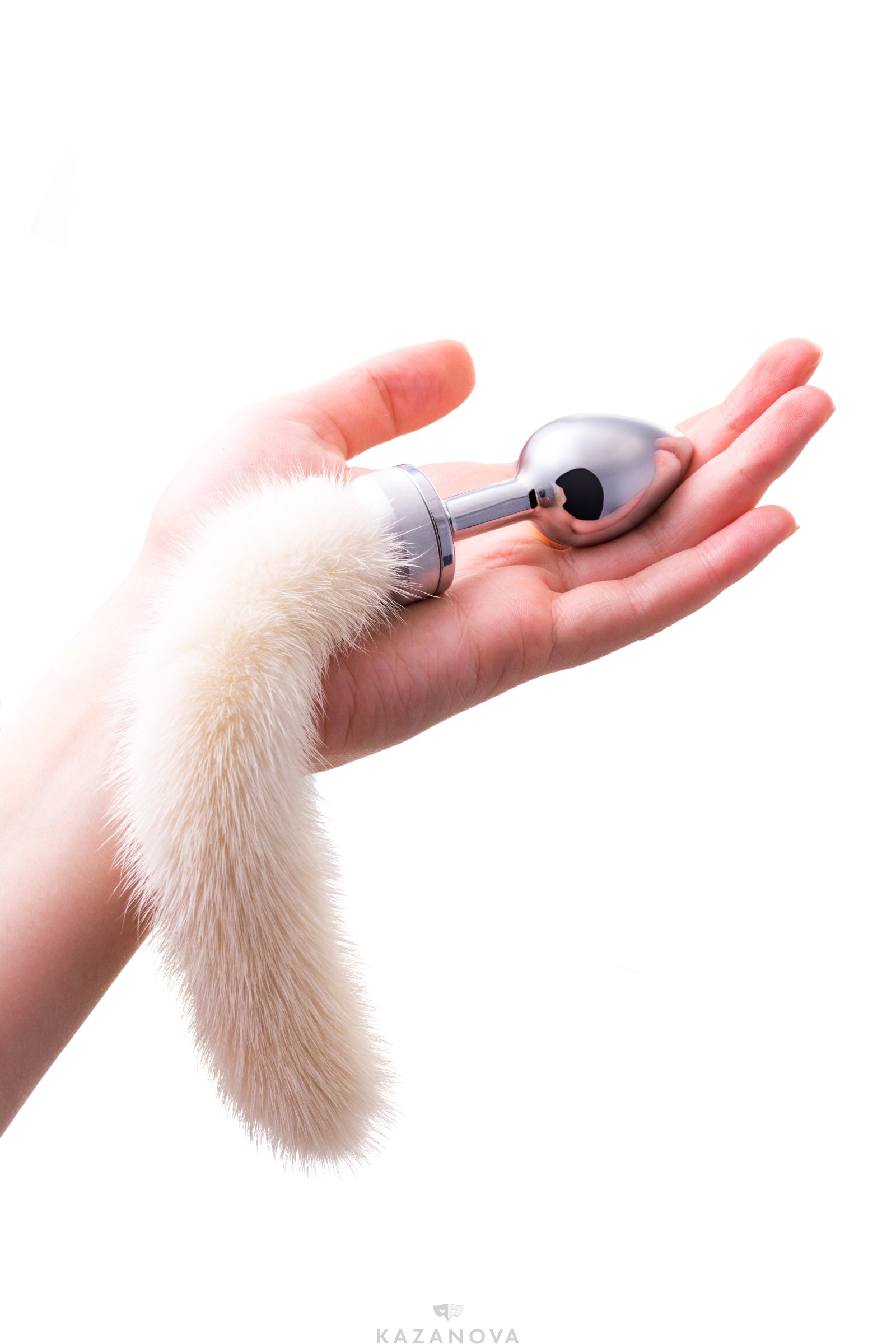Изысканная анальная втулка с хвостом из натуральной белой норки.