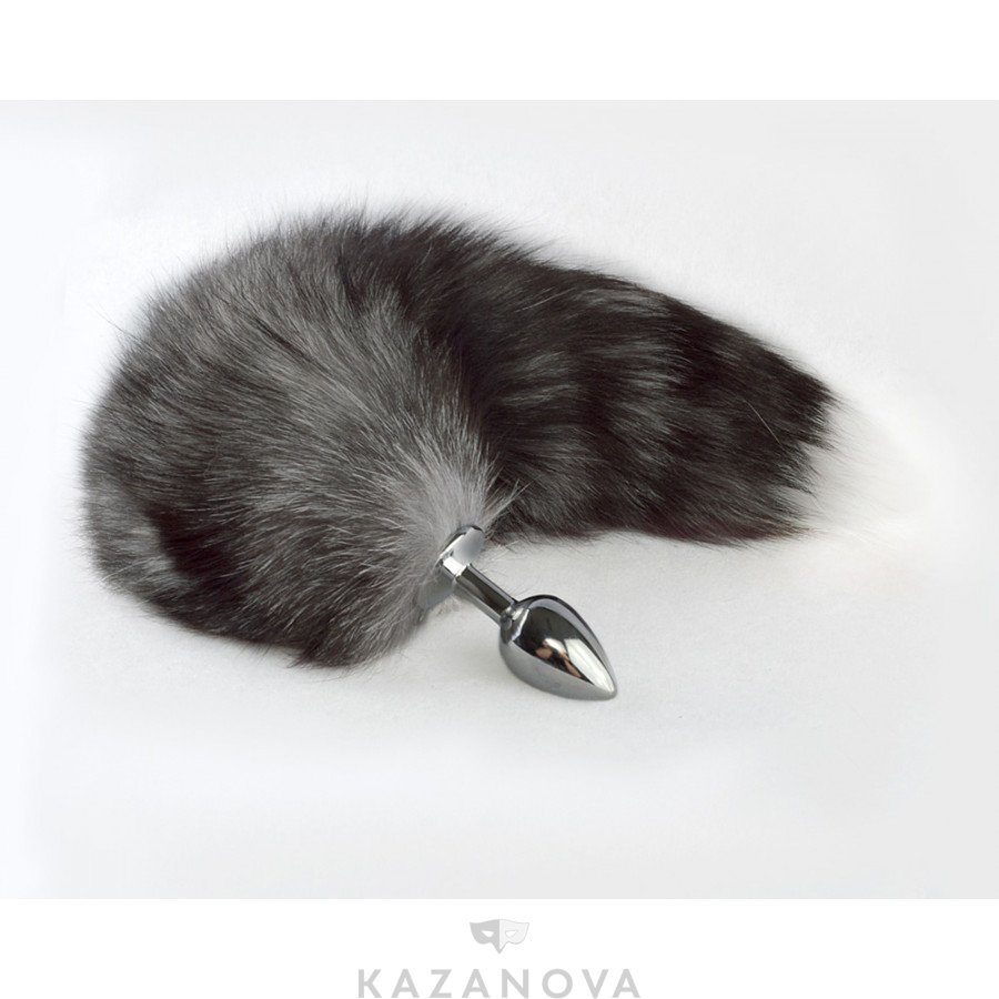 Втулка анальная металлическая Sitabella с хвостом серый 40 см.