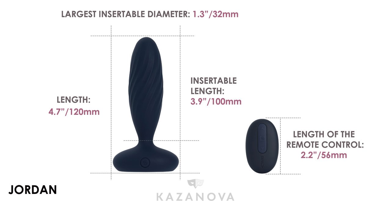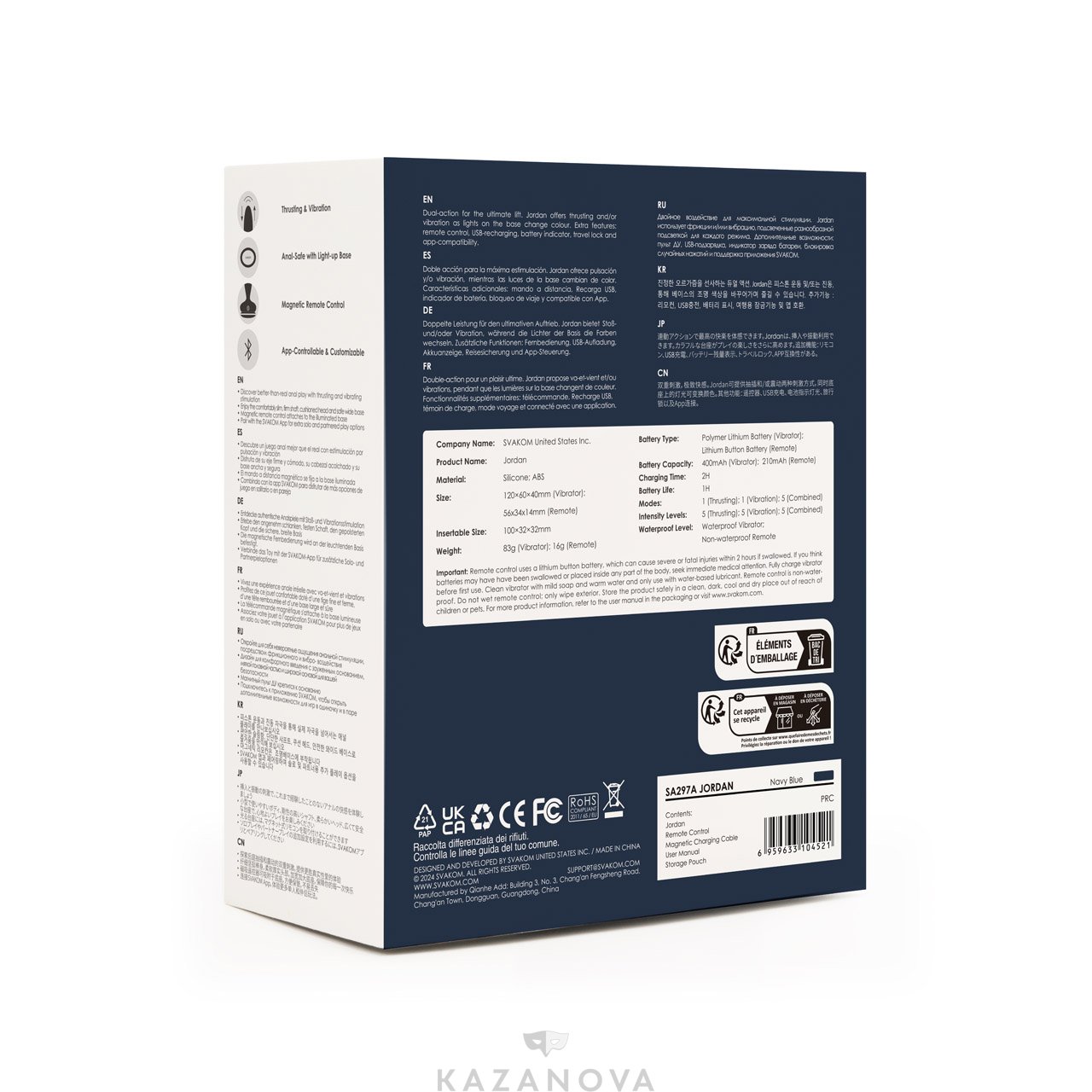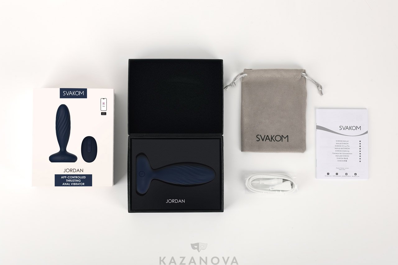 Втулка анальная Svakom Jordan с ду, вибрацией и поступательными движениями синяя