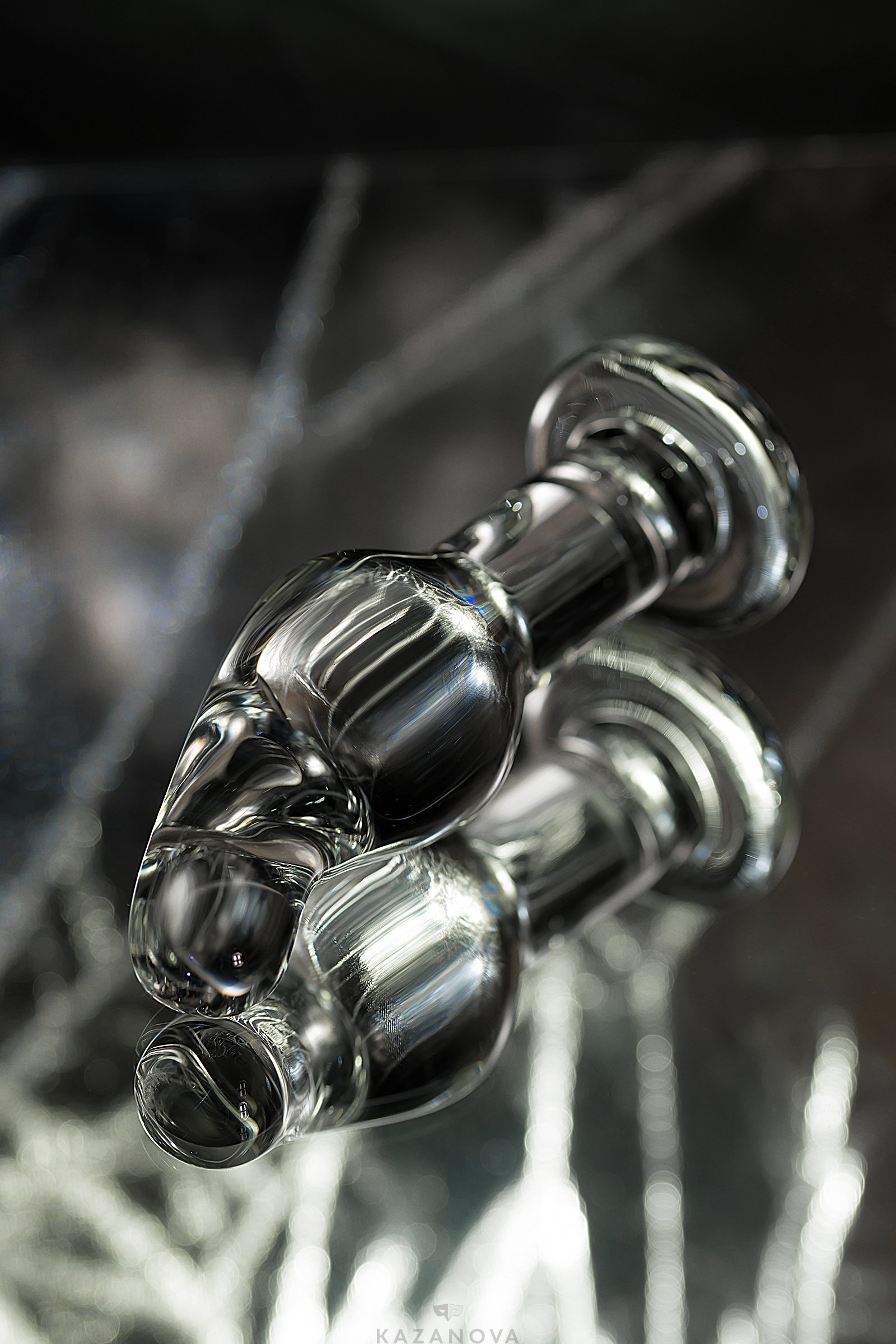 Анальный плаг из каленого стекла. Материал полностью безопасен, не бьется. Легко нагревается от температуры тела или под струей теплой воды.