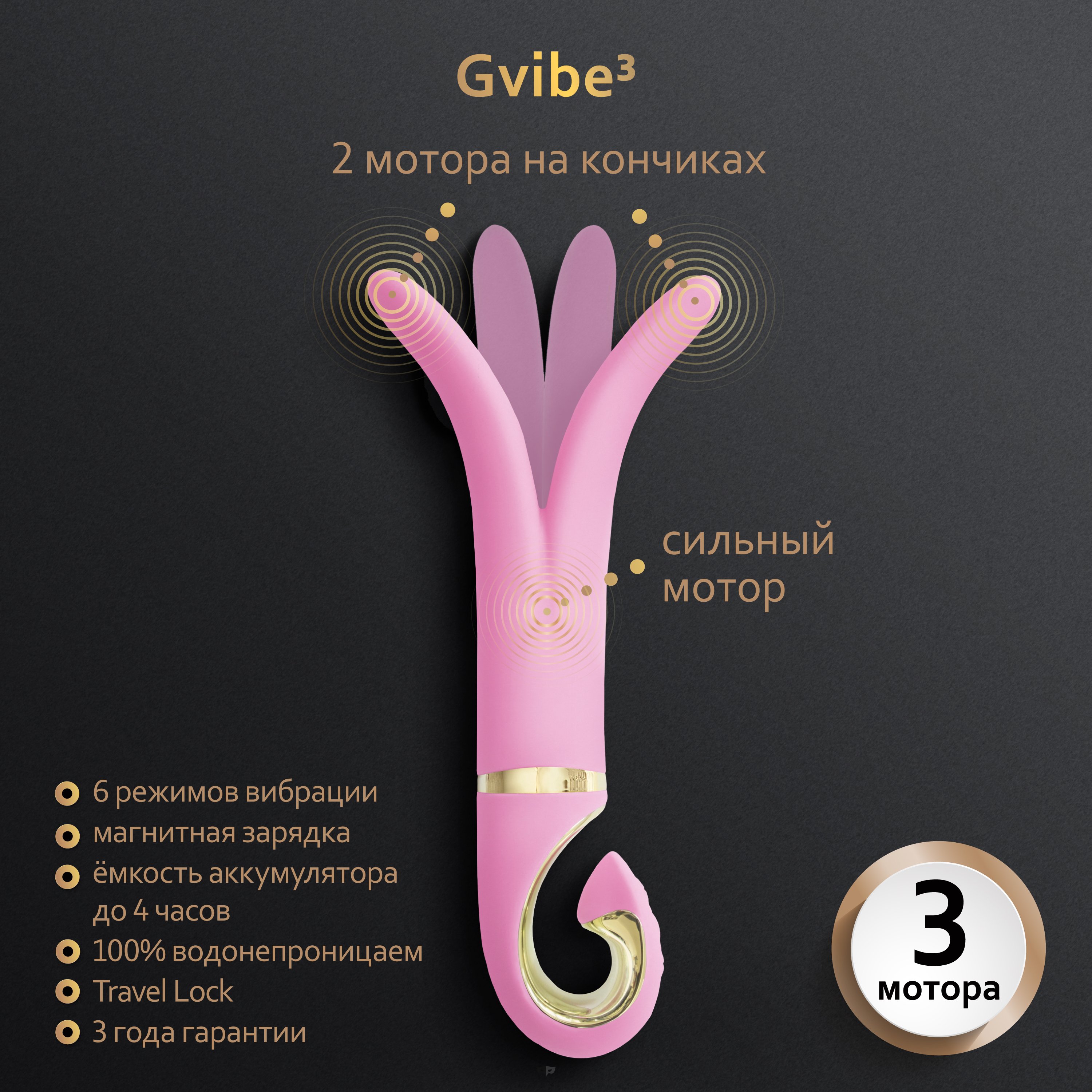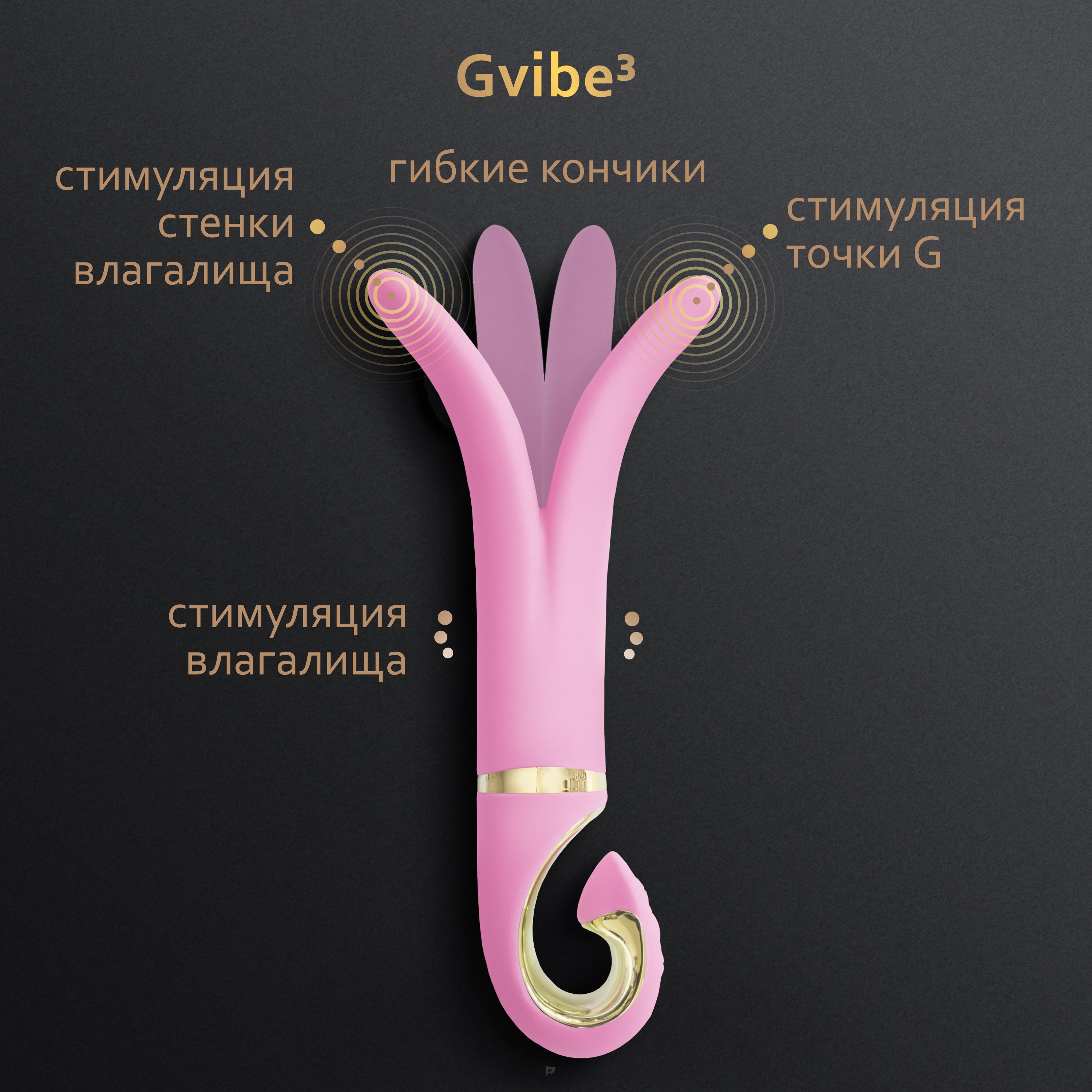 Новый Gvibe 3 стал еще удобнее с ручкой в виде фирменной буквы «G». Теперь вибратор не выскользнет из рук в ответственный момент.