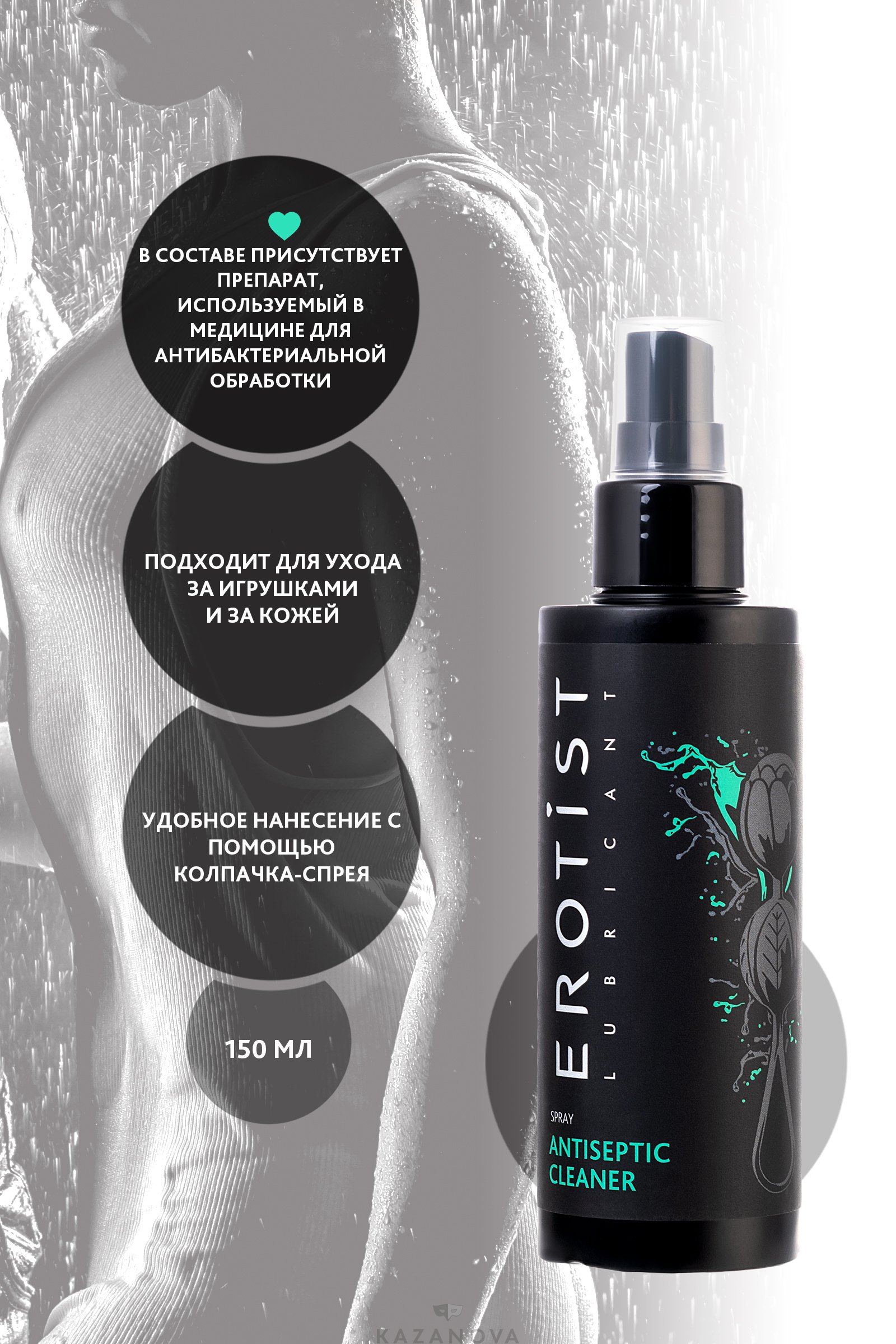 Для наилучшего эффекта помой игрушку водой, а затем нанеси Anticeptic Cleaner от Erotist®. Промокни излишки салфеткой или дай высохнуть на воздухе. Для антибактериальной защиты кожи нанеси на очищаемый участок и равномерно распредели.