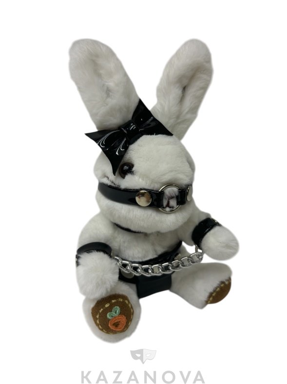 Брелок состоит из мягкой игрушки и BDSM-атрибутики из натуральной кожи с заклепками.