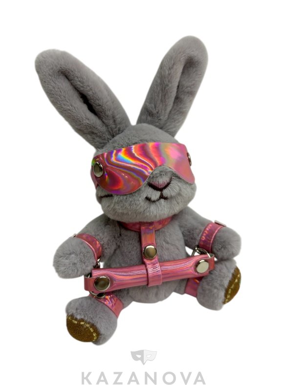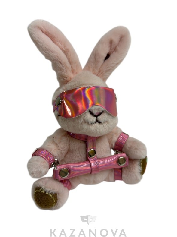 Брелок состоит из мягкой игрушки и BDSM-атрибутики из натуральной кожи с заклепками.