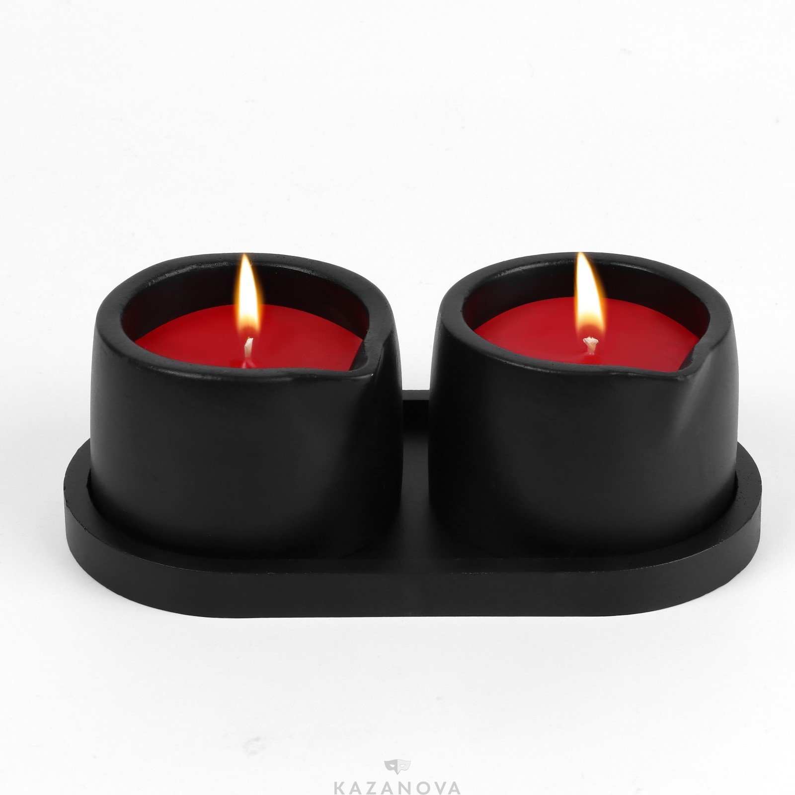 В набор входят 2 свечи с ароматом земляники и низкой температурой плавления.