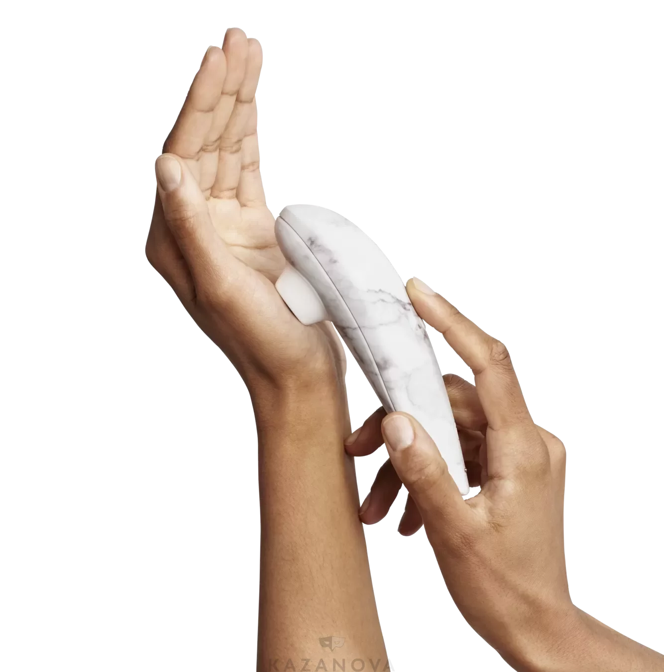 Womanizer Original Marilyn Monroe White Marble идеален для женщин с высокой чувствительностью – начальный режим стал еще нежнее. Игрушка воздействует на клитор очень бережно без прямого контакта с помощью уникальной технологии Pleasure Air – стимуляции воздушными потоками. Просто прикоснись стимулятором к клитору и получай необычное удовольствие.