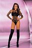 Черное боди сделано из эластичной ткани в крупную и мелкую сетку.