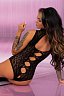 Боди из кружевной сетки плотно облегает тело и подчеркивает все изгибы.