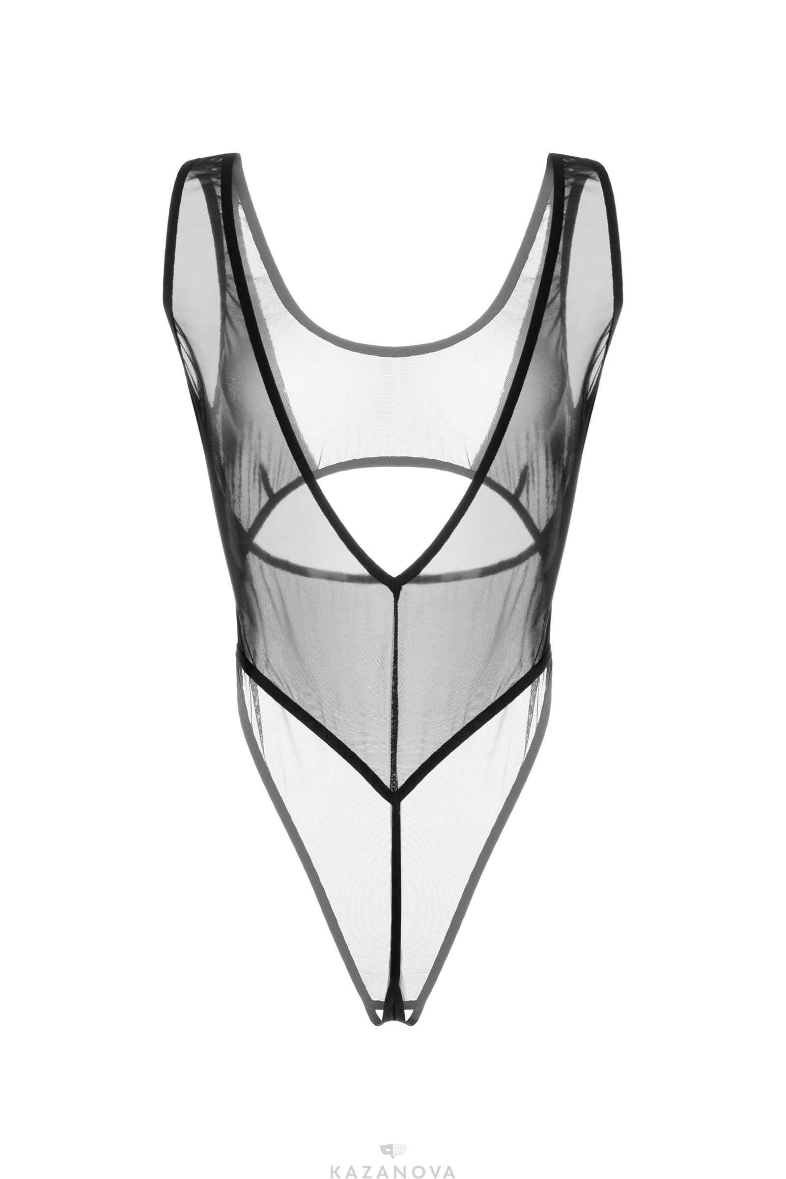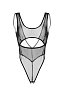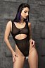 Боди из мелкой сетки с вырезом на талии плотно облегает тело. Боди оставляет открытыми ягодицы и выглядит очень соблазнительно.