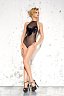 Боди сделано из полупрозрачной ткани с виниловой вставкой в зоне груди.