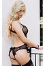 Полупрозрачное боди с кружевной отделкой, интимным разрезом спереди и открытыми ягодицами. Сзади на ягодицах красивый крупный бант. Бретельки регулируемой длины. Спереди сверху вниз проходит разрез, который фиксирован маленькими белыми бантиками, переходящий в открытую интимную зону.