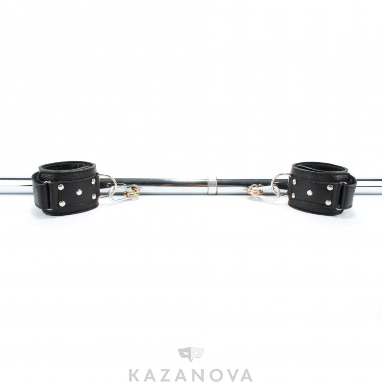 Бондажный набор изготовлен из натуральной кожи превосходного качества. В набор входят наручи, поножи и штанга из металла.