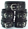 Набор состоит из наручников, оков, ошейника, выполненных из натуральной кожи темно-коричневого цвета. . Все атрибуты имеют внутренней меховой подклад. Аксессуары декорированы заклёпками. Кольца из сварной фурнитуры обеспечивают максимальную прочность. Все составляющие надежно фиксируются ремнями и металлическими пряжками, позволяющими выбрать нужный размер. Аксессуары можно скреплять по вашему желанию кожаными соединениями на карабинах. Не ограничивай себя во власти!