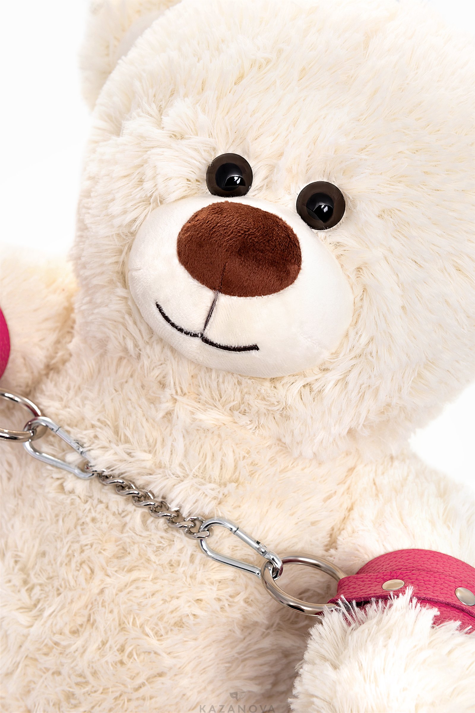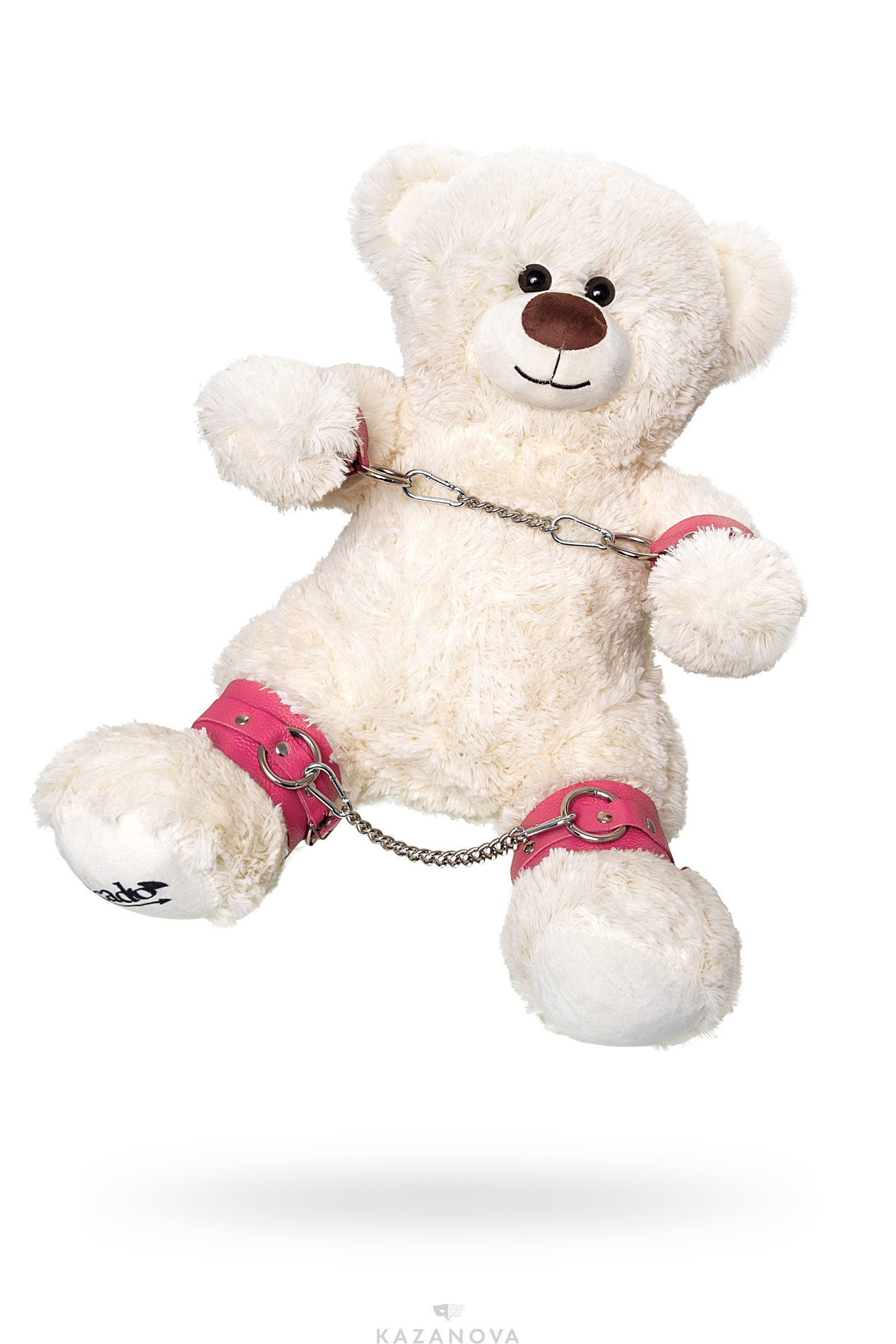 В комплект к медведю входят розовые наручи и поножи из натуральной кожи. Наручи и поножи отлично ограничивают подвижность, полностью безопасны и регулируются по размеру.