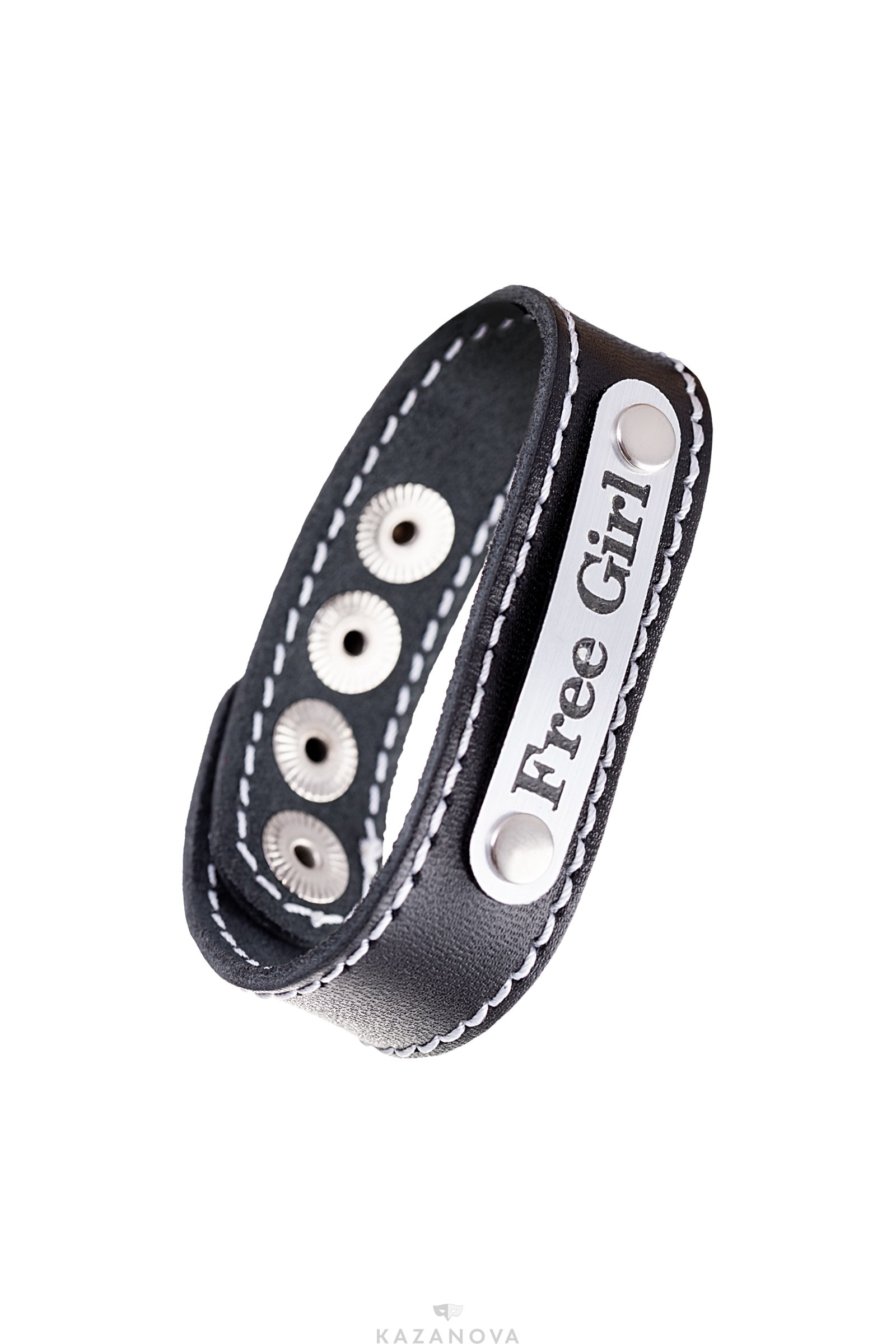 Браслет "Free Girl" из натуральной кожи с прострочкой черный