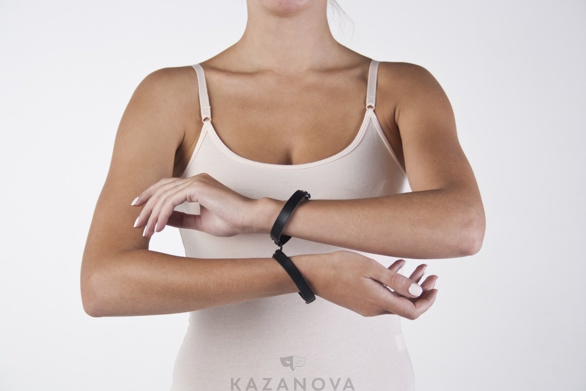 Оба браслета соединяются между собой и фиксируют руки в выбранном положении. Не сдавливают кожу и комфортны в использовании.