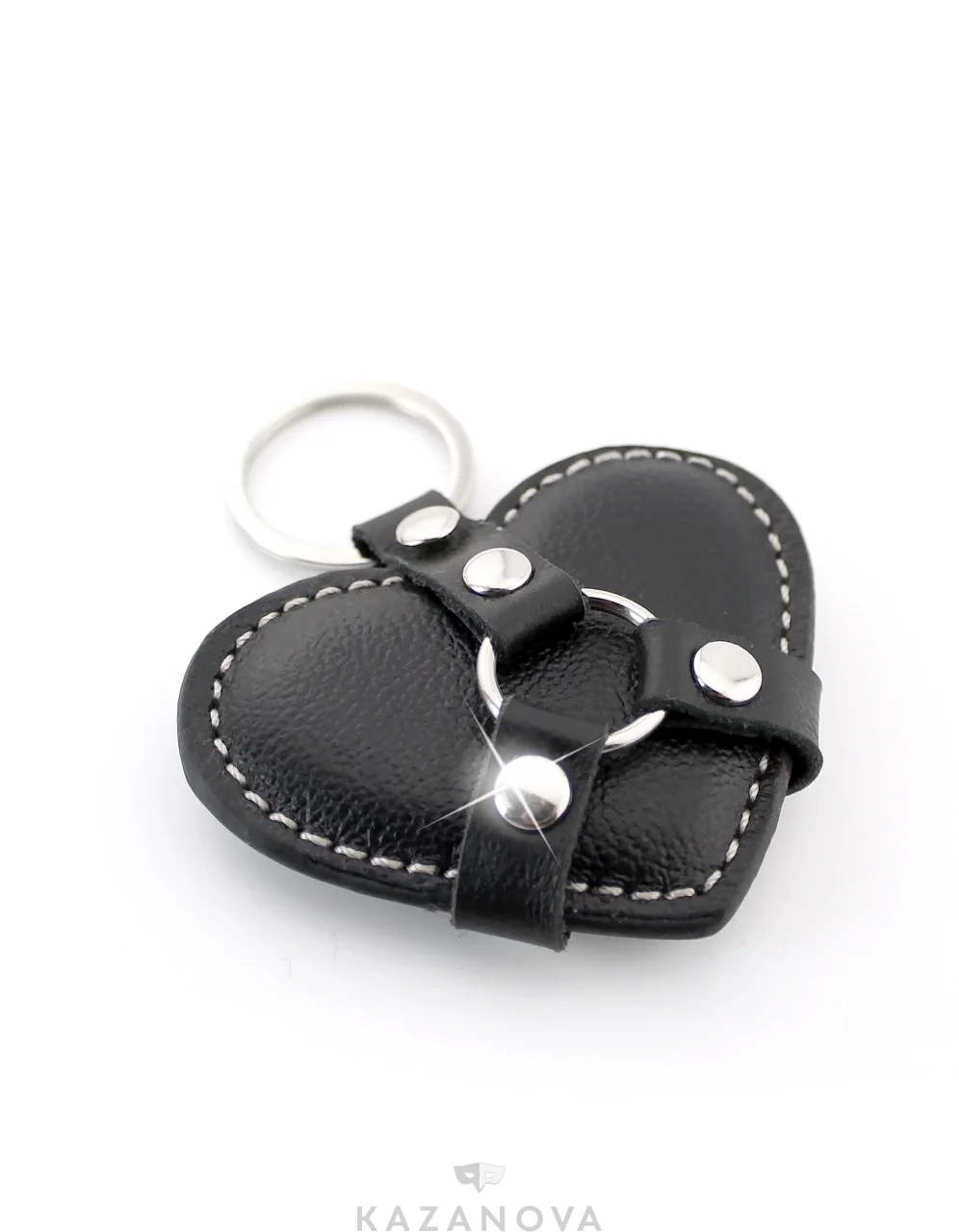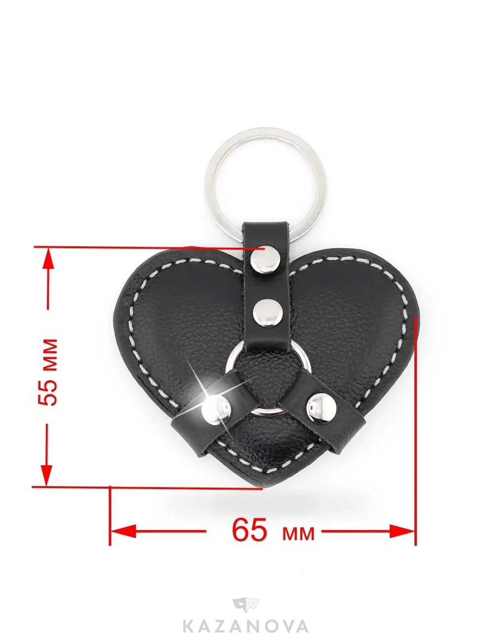 Брелок изготовлен из натуральной кожи и декорирован заклепками.