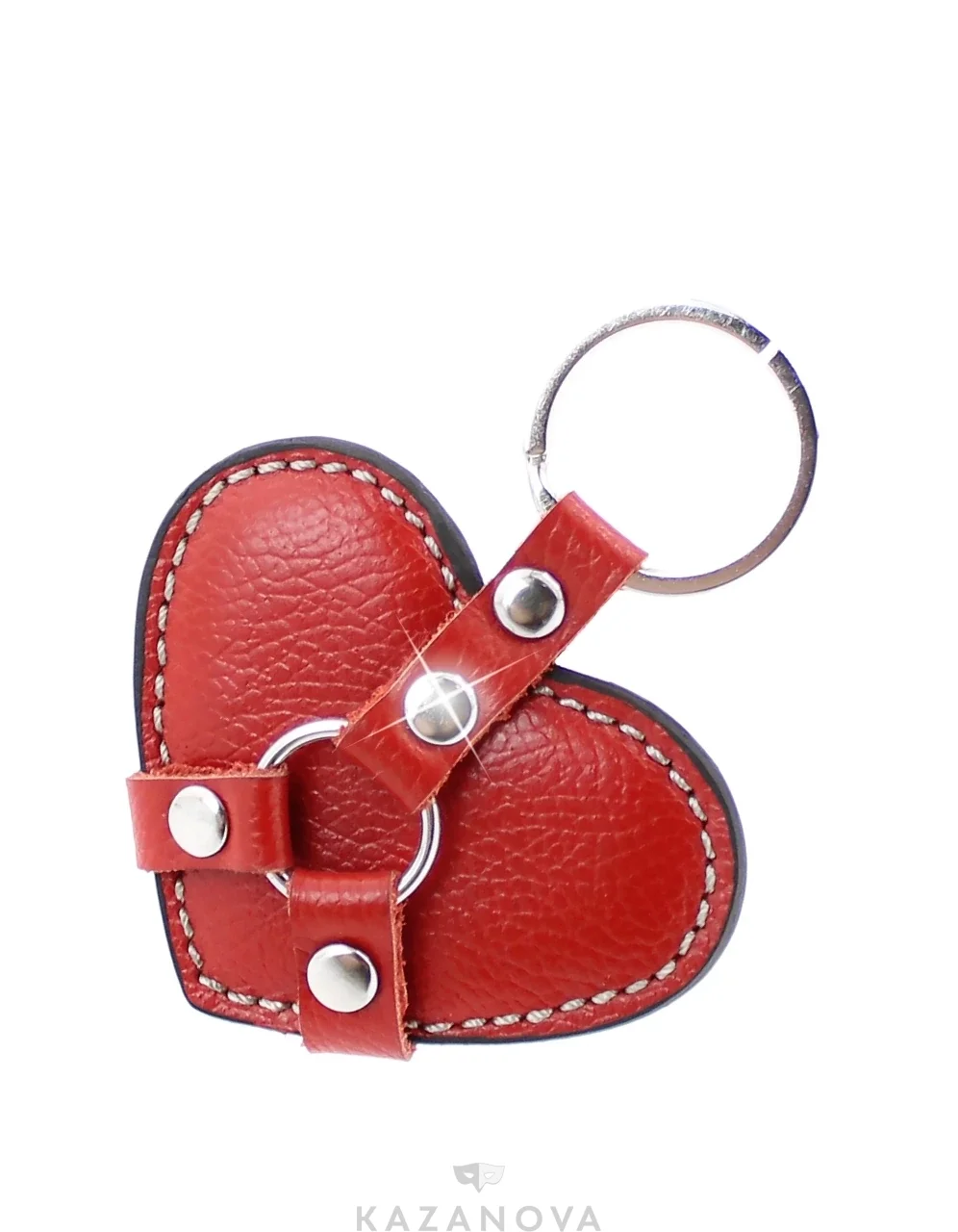 Брелок изготовлен из натуральной кожи и декорирован заклепками.