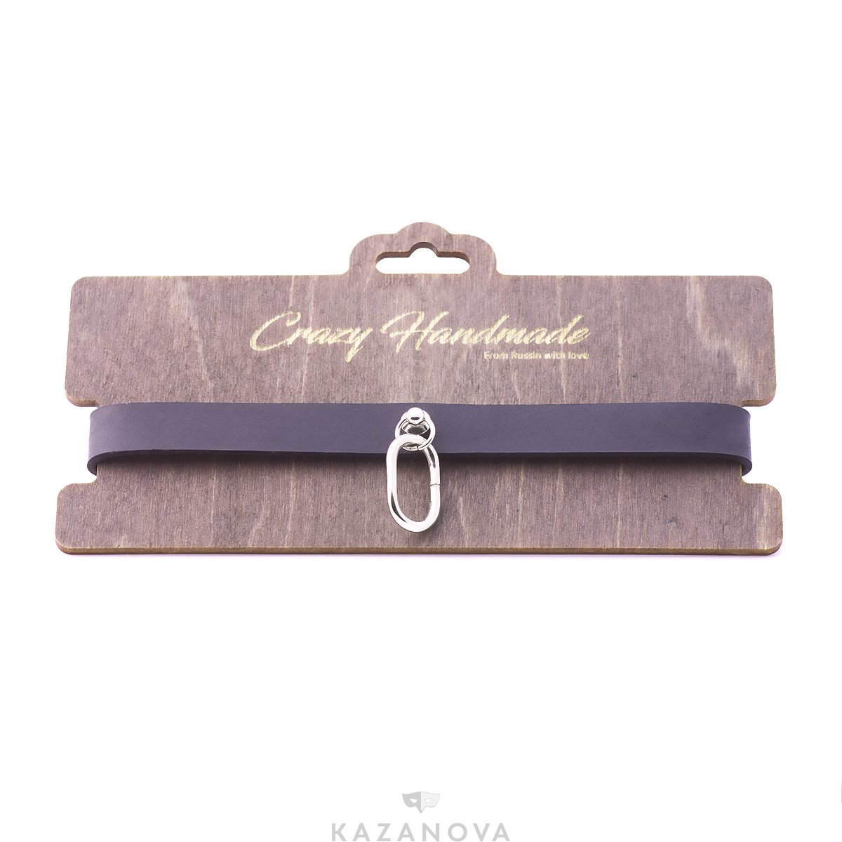Чокер Crazy Handmade из натуральной кожи узкий чёрный с овальным кольцом
