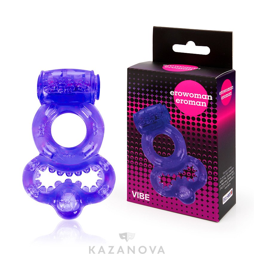 Эрекционное кольцо с вибрацией EroWoman/Man Vibe фиолетовое/голубое