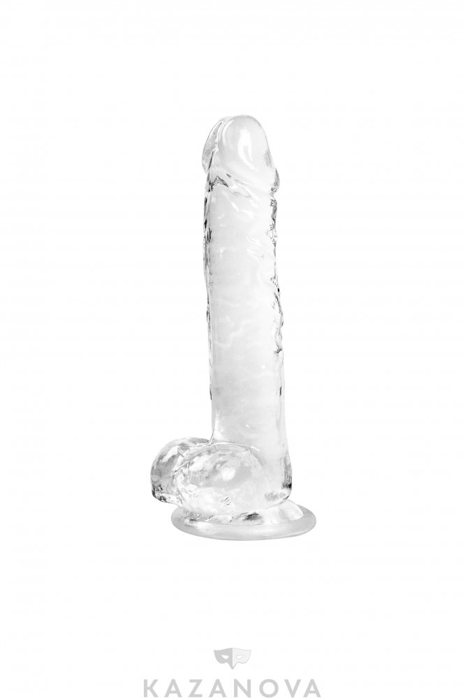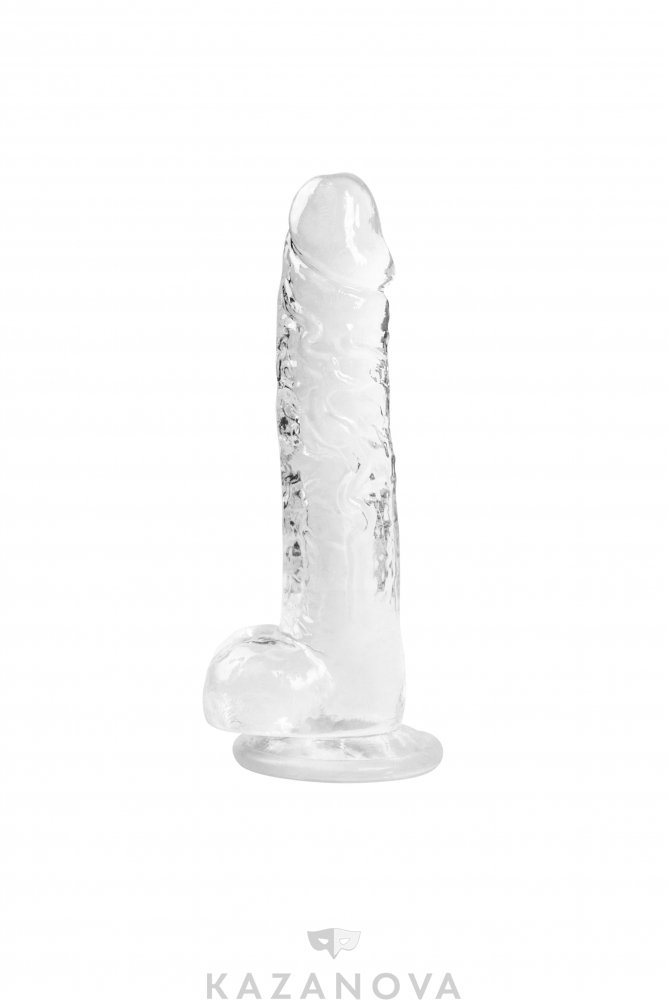 Прозрачный фаллоимитатор с реалистичным дизайном соблазняет с первого взгляда. Крупная головка, упругий ствол с рисунком возбужденных вен и мошонка обещают неистовые приключения.