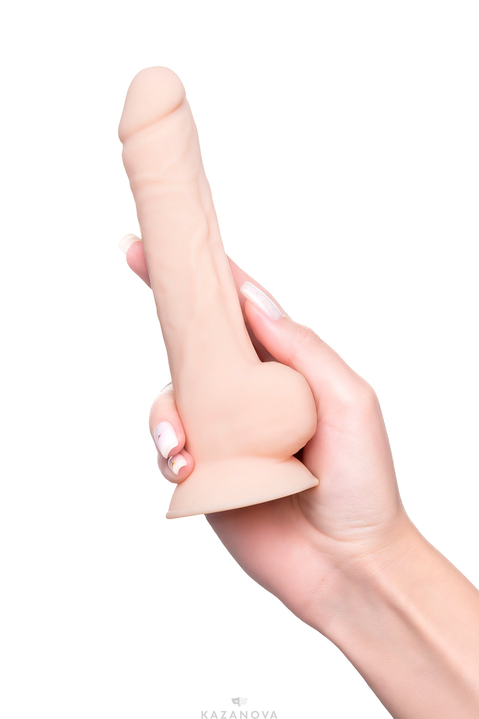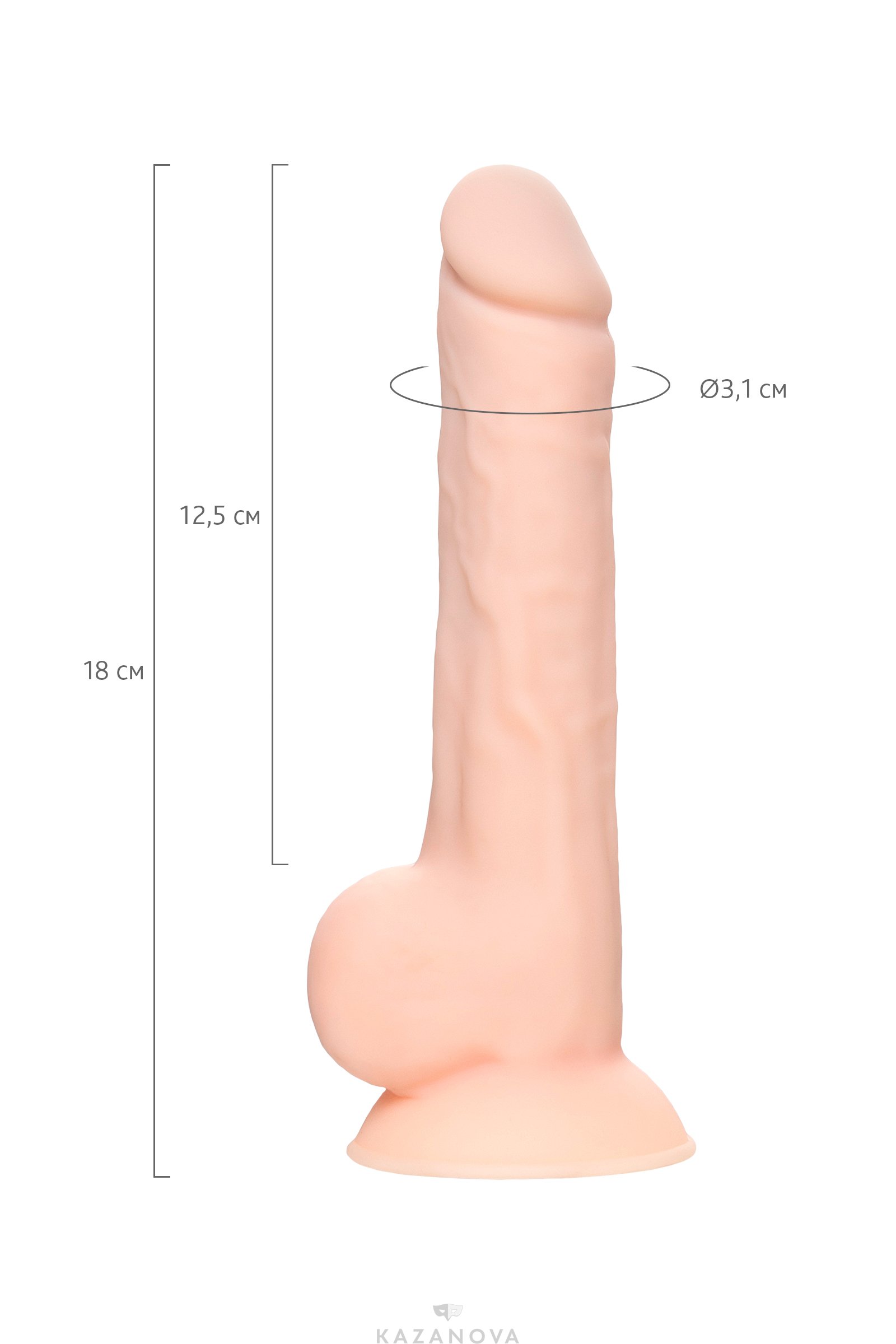Фаллоимитатор сделан максимально реалистично – игрушка впечатлит даже искушенных любительниц естественных ощущений. Крупная головка без крайней плоти, упругий ствол с переплетением возбужденных вен и мощная мошонка с детальной прорисовкой всех складочек.