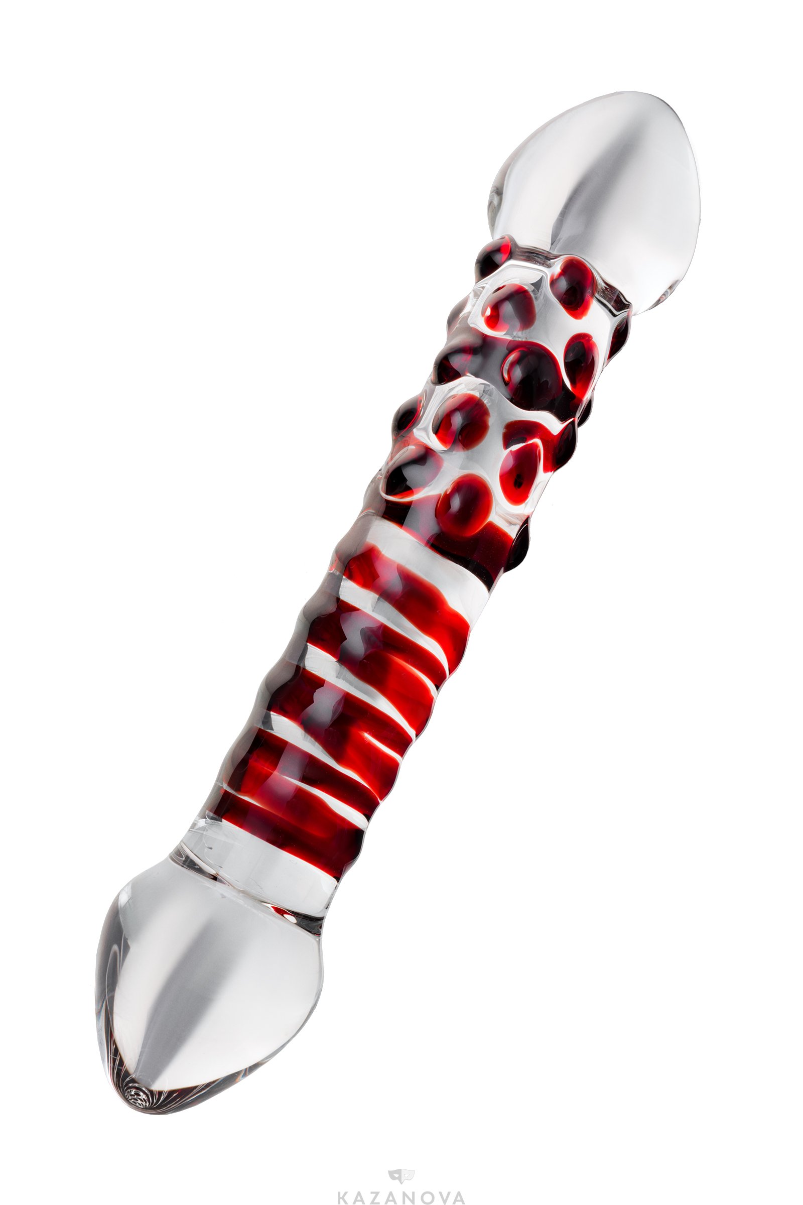 Фаллоимитатор из каленого стекла. Материал полностью безопасен, не бьется. Легко нагревается от температуры тела или под струей теплой воды. В отличие от реалистичных материалов, стекло дает ощущение плотности и заполненности. Кроме того, секс-игрушки из стекла эстетичны, часто совершенно не уподоблены фаллосу, что делает их самостоятельными украшениями и придает оттенок роскоши во время любовной игры. Игрушки из стекла неприхотливы в использовании и хранении. Совместимы с любым типом смазки.