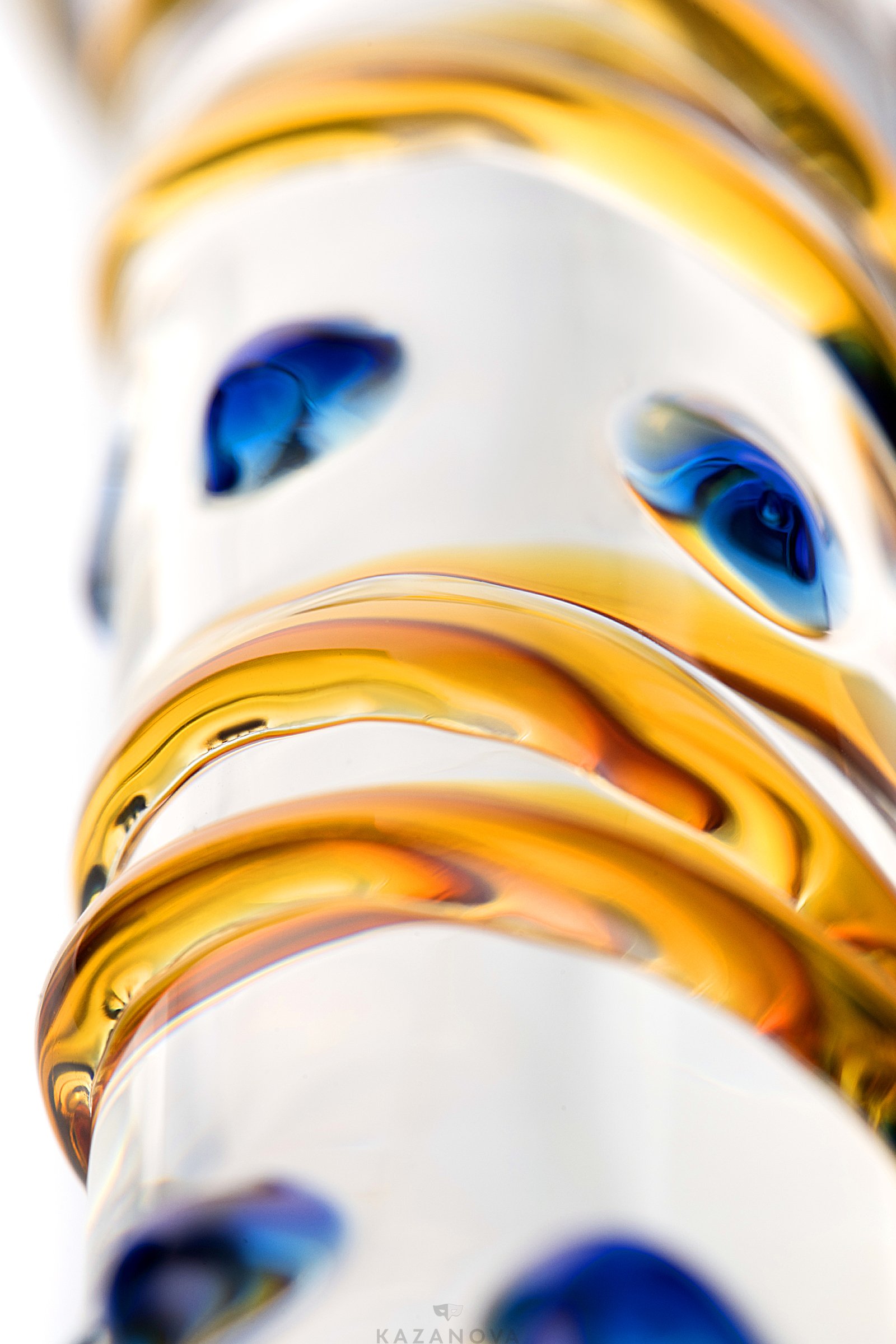 Фаллоимитатор из каленого стекла. Материал полностью безопасен, не бьется. Легко нагревается от температуры тела или под струей теплой воды.