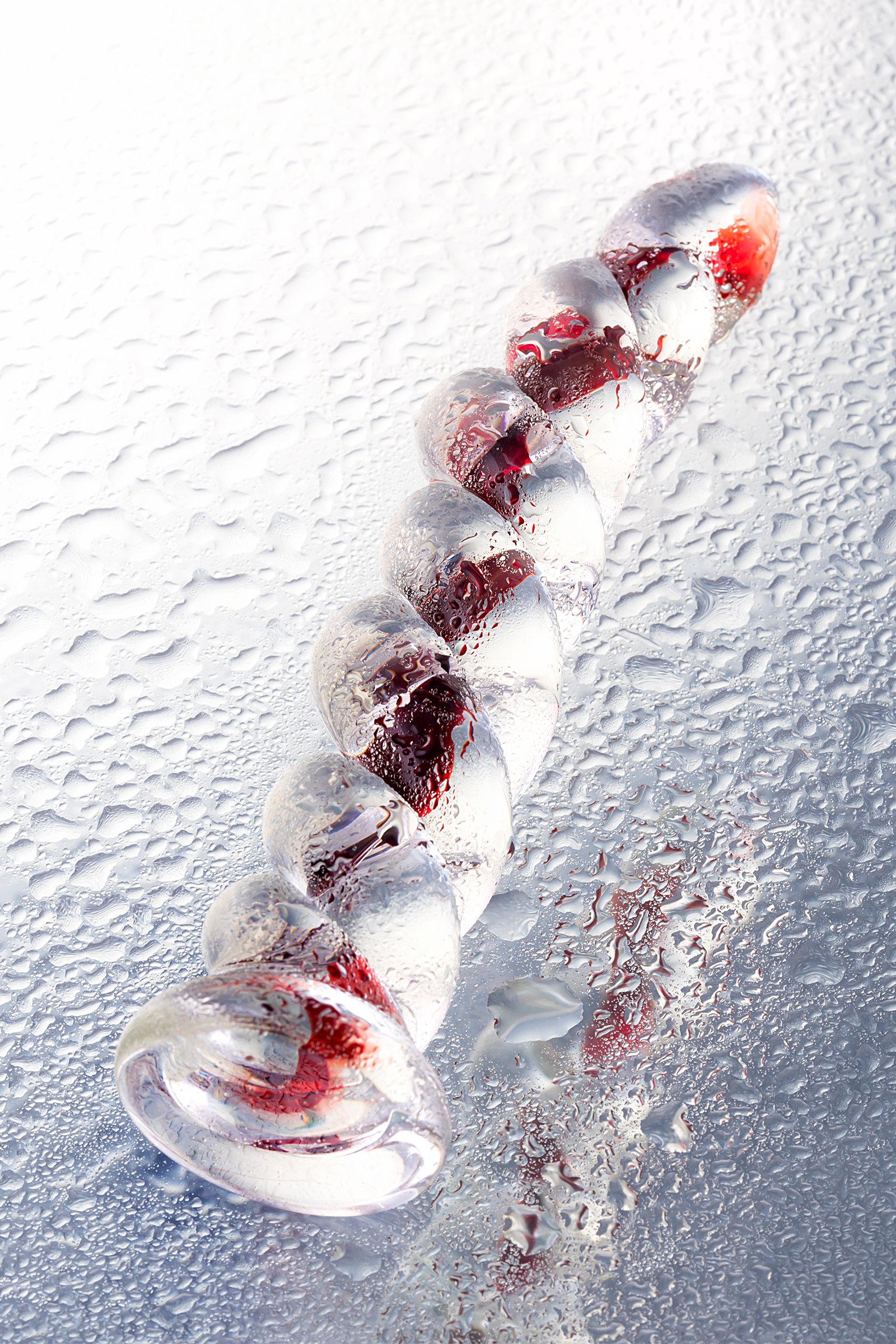 Фаллоимитатор из каленого стекла. Материал полностью безопасен, не бьется. Легко нагревается от температуры тела или под струей теплой воды.
