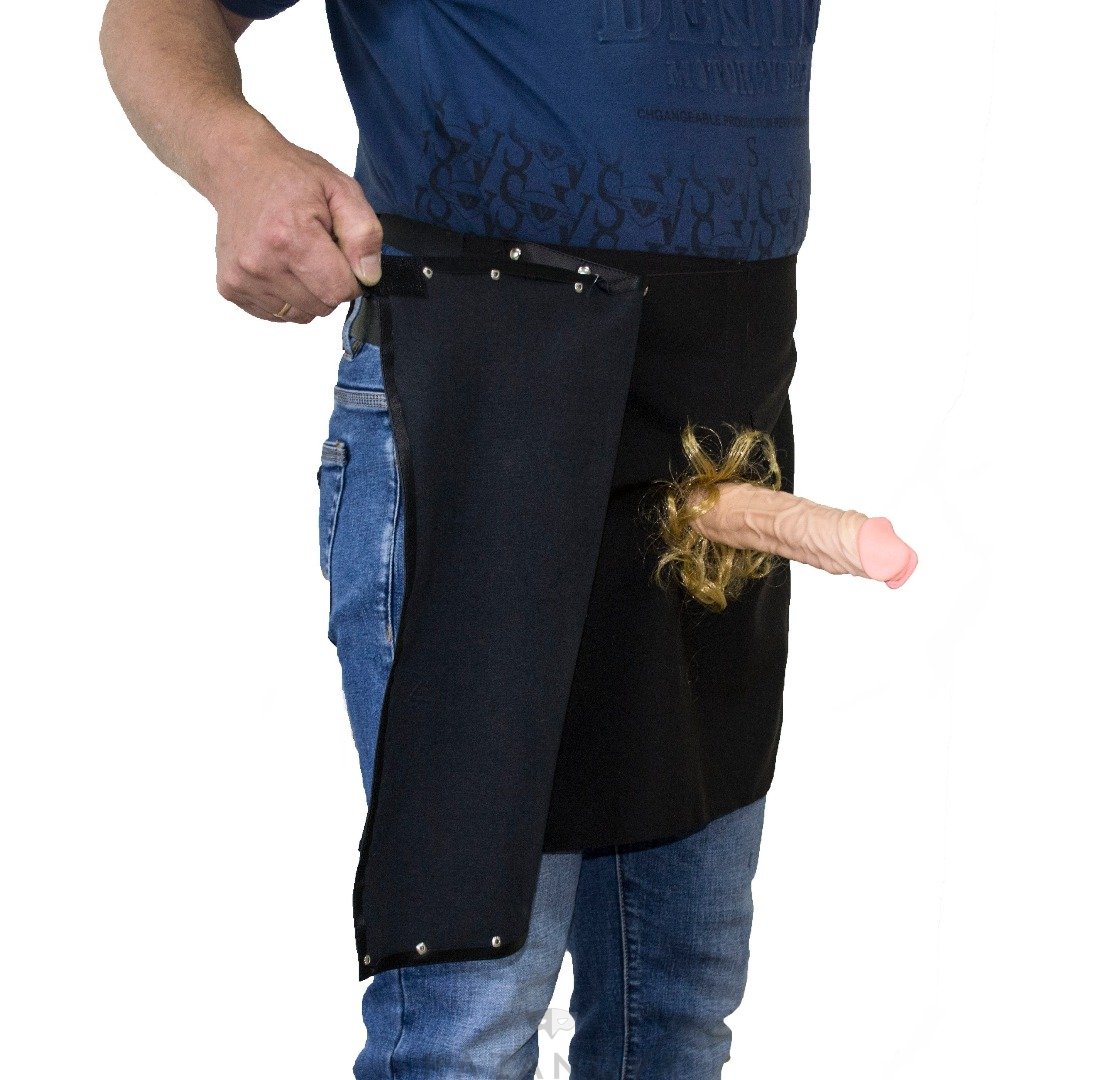 Под плотной тканью скрывается неожиданный сюрприз. При открытии ткани правой рукой фаллос поднимается. При закрытии ткани обратно на липучку, фаллос опускается.