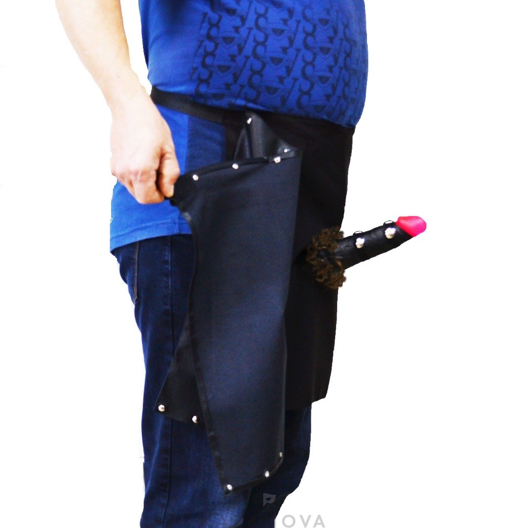 Под плотной тканью скрывается неожиданный сюрприз. При открытии ткани правой рукой фаллос поднимается. При закрытии ткани обратно на липучку, фаллос опускается.