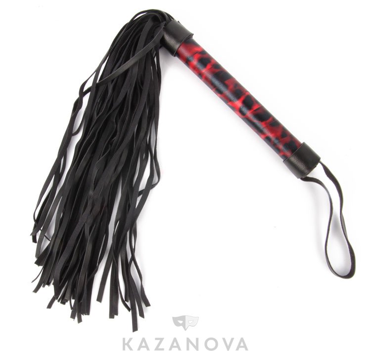 Флогер из искусственной кожи черный с красно-черной ручкой