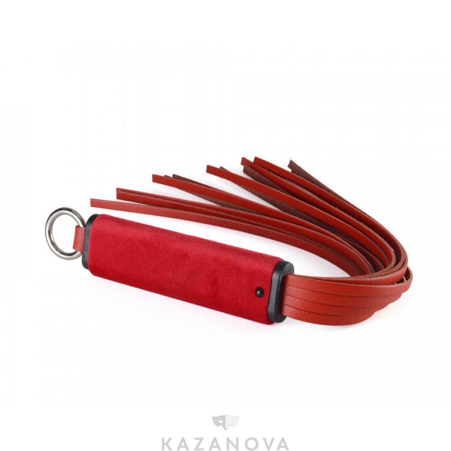 Флогер красный из натуральной кожи с велюровой рукоятью