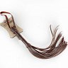 Флогер изготовлен из натуральной кожи высокого качества, имеющая естественный красивый рисунок. Общая длина плети достигает 40 см, поэтому может использоваться не только для разогрева тела, но и на более нежных и слизистых участках тела. Поэтому данный девайс могут использовать не только искушённые пользователи, но и те, кто не применял в сексуальных играх атрибуты BDSM. Ударная часть плети состоит из 22 плоских хвостов. Круглая рукоять обвита кожей и украшена декоративными элементами. Также на ручке имеется ремешок, для более удобного использования и хранения.