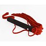 Флогер сделан из качественной и мягкой натуральной кожи красного цвета. Девайс имеет жесткую рукоять из металла, гладкие концы и петлю.