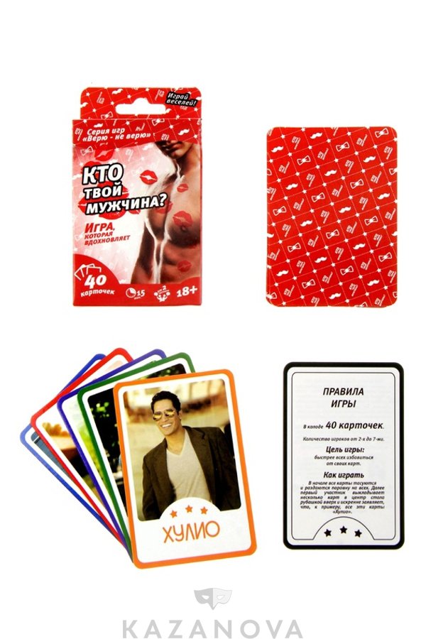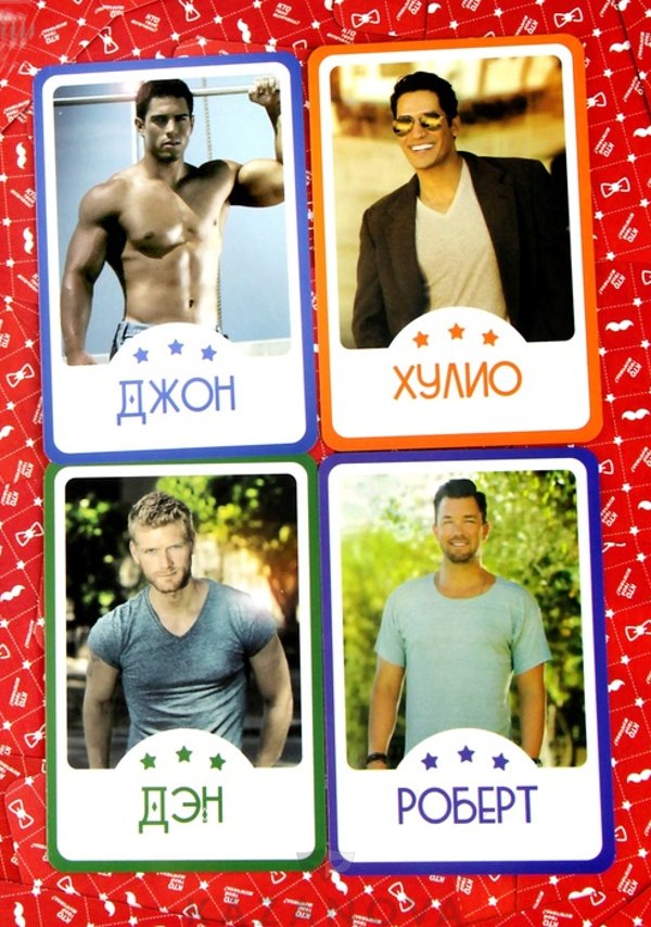 Брутальный Джон, милашка Роберт... 40 карточек с изображением сексуальных мачо. Ваша задача заключается в том, чтобы быстрее всех игроков избавиться от них. Выкладывая несколько карт на стол, вы в праве заявить, что на них изображены те или иные мужчины, на ваше усмотрение. А остальные могут вам поверить или заподозрить неладное.