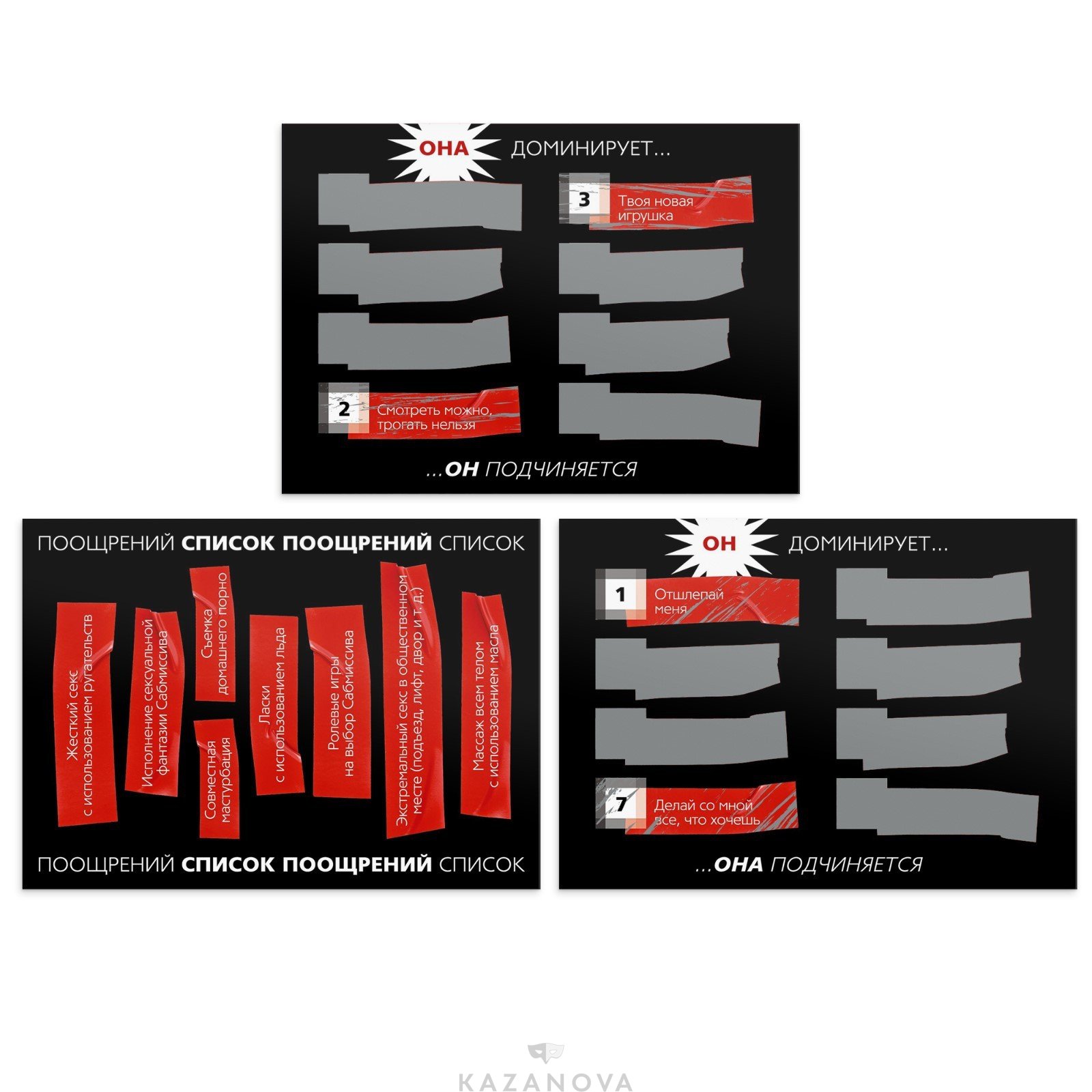 В комплекте 3 большие карты с заданиями: для него, для нее и парные.
