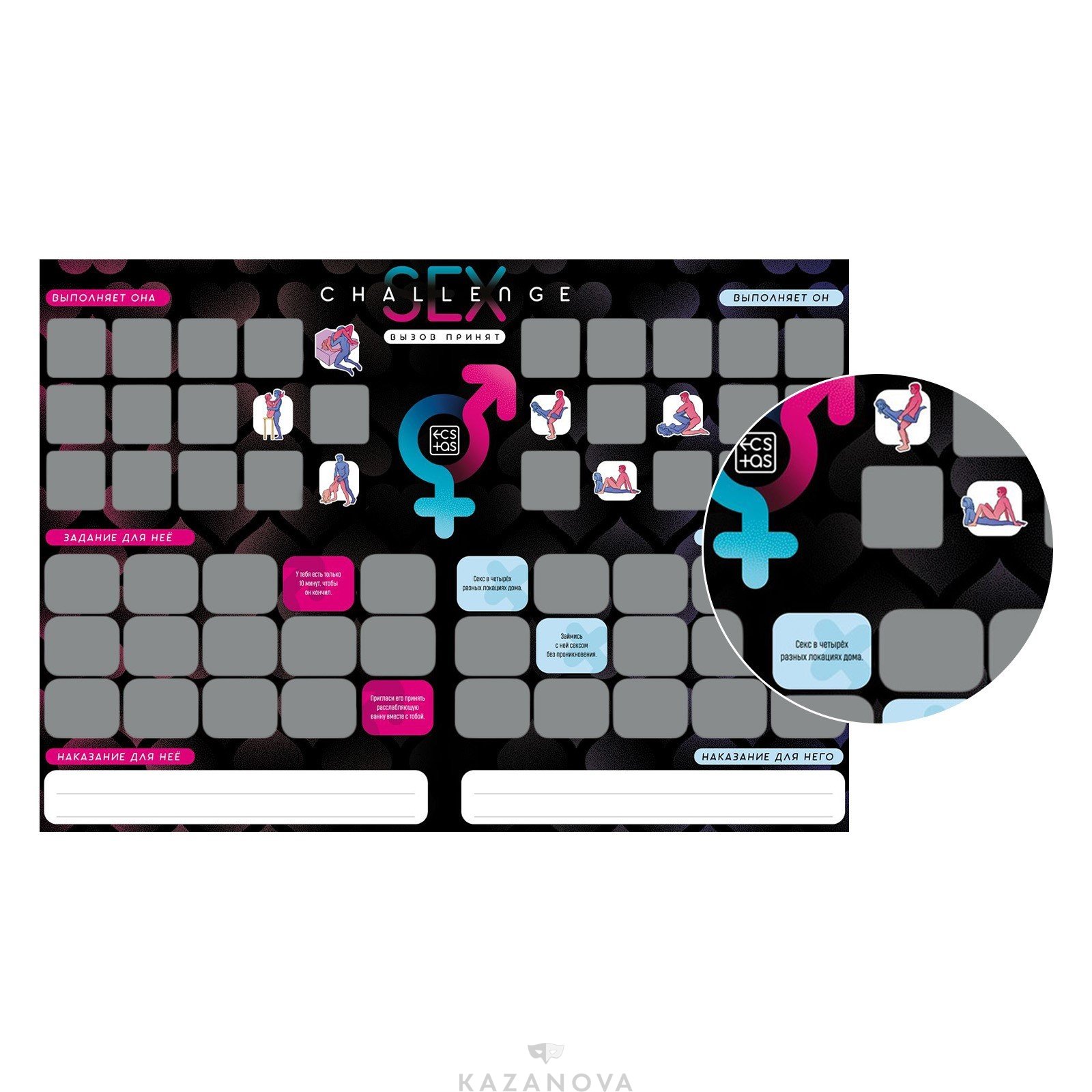 В комплект входит большая карта с сексуальными заданиями.
