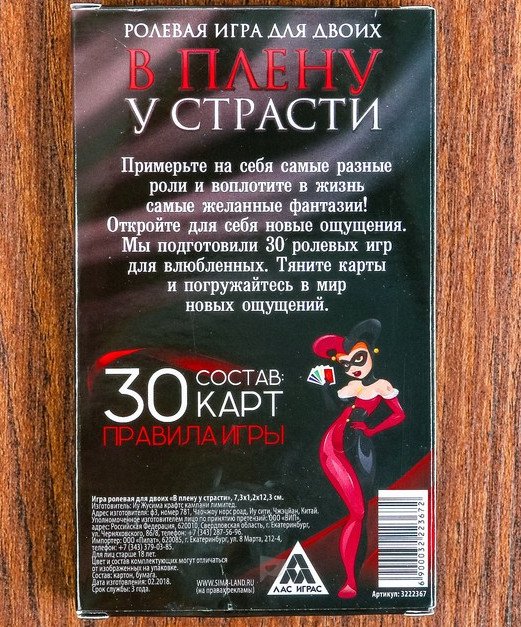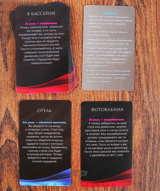 В комплект входят 30 карточек с эротическими сценариями для пары.