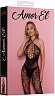 Костюм из кружевной сетки плотно облегает тело и подчеркивает все изгибы. Зона декольте со шнуровкой привлекает к себе внимание. Есть доступ к интимным зонам.