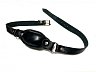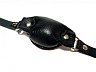 Кляп изготовлен из натуральной кожи черного цвета и декорирован элементами из металла.