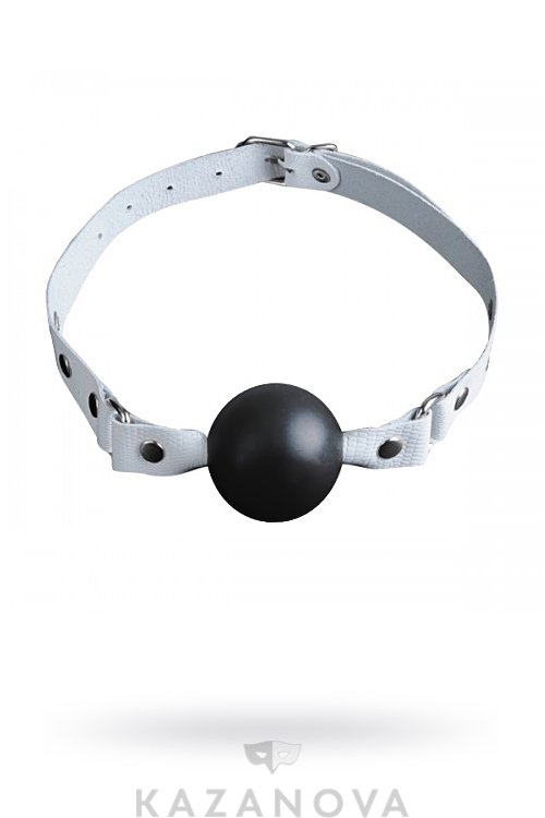 Кляп-шар белый из латекса на ремешке из натуральной кожи