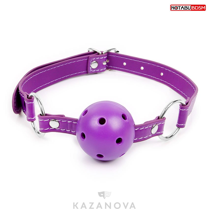 Фиолетовый кляп-шар NoTabu отлично подойдет для сценариев в стиле BDSM и речевой депривации.