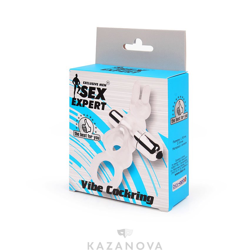 Кольцо эрекционное SexExpert Cock's Ring с вибрацией и кольцом на мошонку прозрачное